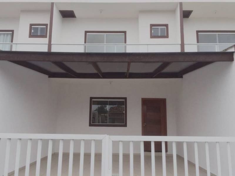 Sobrado com 2 suítes, um lavabo, sacada, cozinha e sala de estar, garagem coberta para 2 carros, excelente acabamento, amplo espaço nos fundos, rua asfaltada, 81 m². A 1.600 metros da praia.